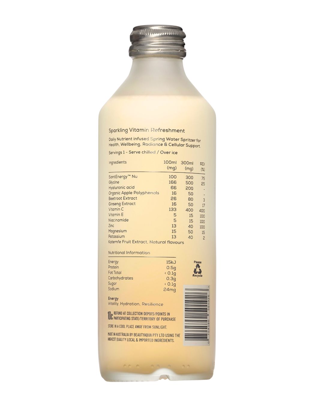 A bold and invigorating sparkling blend, featuring smoky, woody botanicals and the subtle sweetness of native Australian Kakadu plum. A sophisticated, non-caffeinated energy drink for elevated clarity, vitality, and calm focus—without the crash.