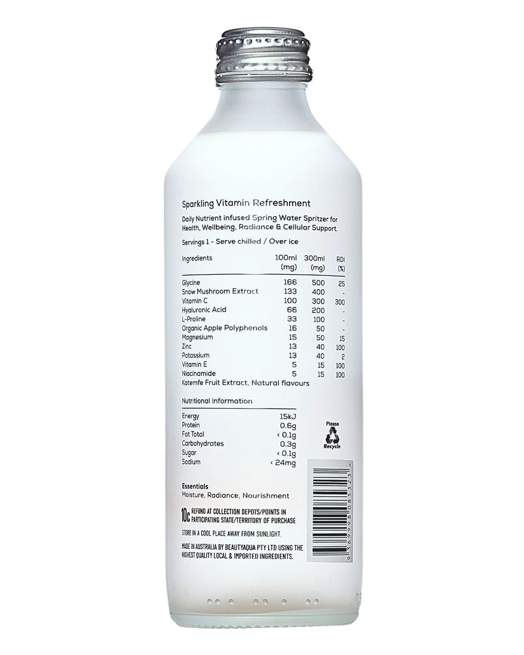 A vibrant, sparkling blend of exotic fruits in pure Australian spring water—designed to hydrate, nourish, and awaken your natural radiance from within.